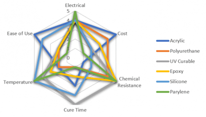 La elección del revestimiento conformado (conformal coating) adecuado depende de las necesidades de los materiales, es decir, qué certificaciones ( IPC o UL) se requieren, qué condiciones ambientales debe soportar el revestimiento y cuál es el proceso de ensamble. Por lo tanto, los recubrimientos conformados no deben clasificarse de mejor a peor, sino cual es la mejor opción para cada aplicación.
